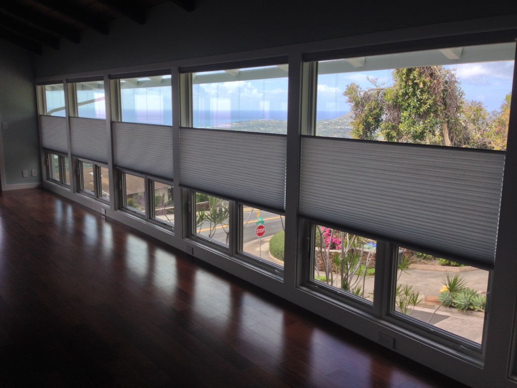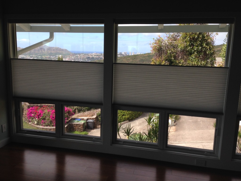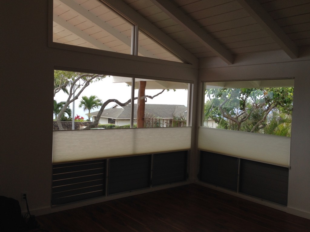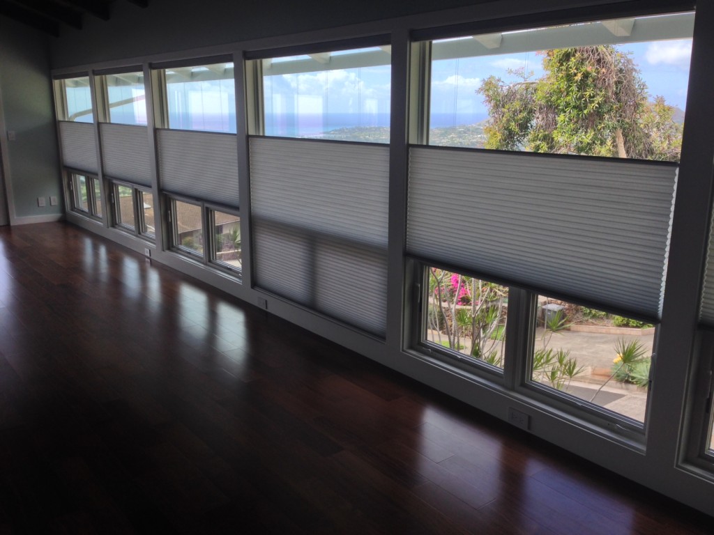 Oahu Blinds offers both Applause and Duette honeycomb shades by Hunter Douglas. Hunter Douglas is the original creator of the honeycomb shade and has revolutionized the industry with its fancy lift systems such as top down bottom up operation, energy saving and designer fabric selections, and patented designs. With hundreds of fabric and color options, the honeycomb shade offer several fascinating solutions to window covering problems with features like fully functioning specialty shapes, the vertiglide system, designed to mimic sliding doors, duo-lite, which offers two fully functioning fabric selections built in to a single shade, and the cordless design, literise, that allows you to set the shade height by simply grabbing the shade and putting it where you want it. Oahu Blinds is an authorized dealer of Hunter Douglas products located in Kailua, Hawaii on the island of Oahu.